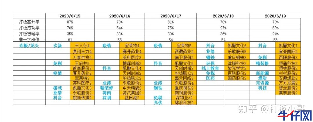 漲停復盤模板,個人也可以統計和制作,這里增加了《短線打板氛圍》的指標,包括:非一字漲停;打板被砸率;打板成功率;打板高開率。如下圖: