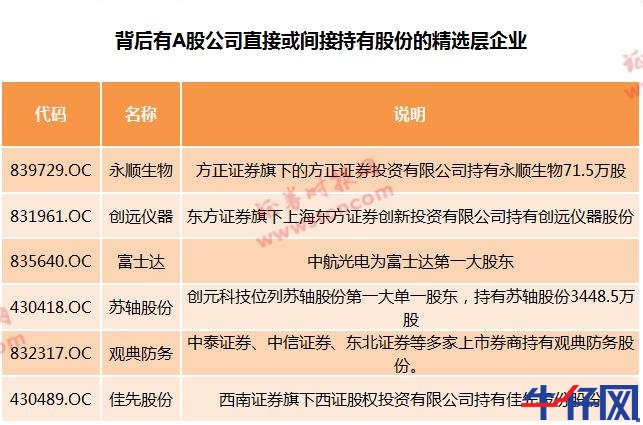值得注意的是,上述首批32家精選層企業背后,存在不少A股上市公司的身影。