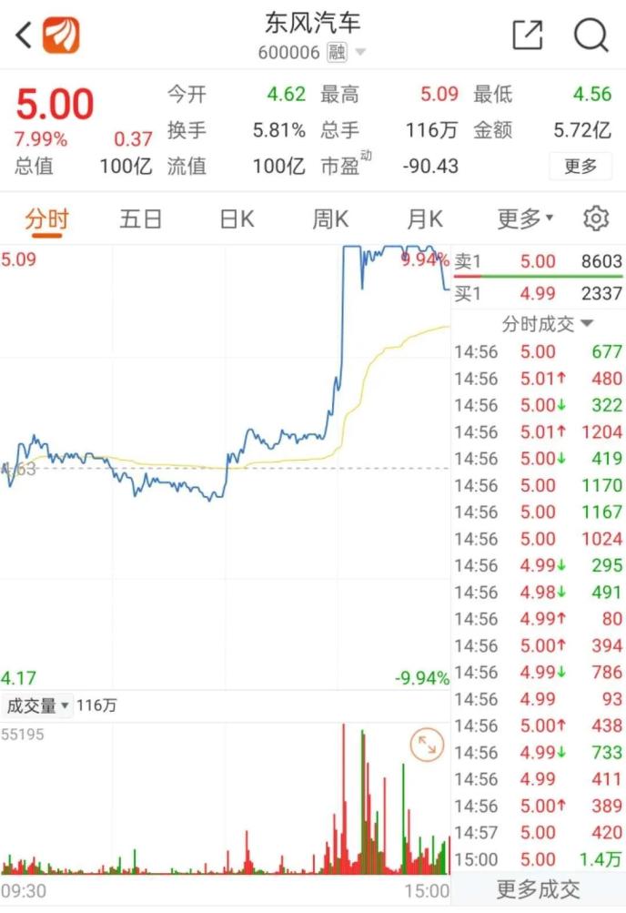 8月11日下午,東風汽車集團有限公司旗下的東風汽車、東風科技(行情600081,診股)一度漲停。截至下午收盤,東風汽車漲7.99%,東風科技漲2.55%。