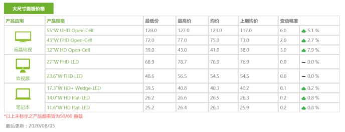 多家市調機構發(fā)布的8月上旬面板報價顯示,受供需格局持續(xù)改善推動,TV面板漲價趨勢依舊。
