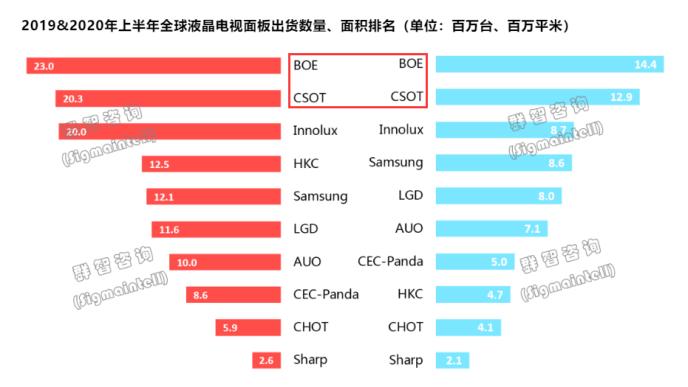 群智咨詢指出,受益于產(chǎn)能增長和韓廠退出,今年上半年,中國內地面板廠商的出貨數(shù)量在全球的市場份額較去年同期上升了9.3個百分點至55.5%,出貨面積的市場份額上升11.9個百分點至59%。上半年京東方和TCL科技旗下TCL華星分列全球LCD TV面板出貨數(shù)量和出貨面積的前兩名。集邦咨詢預計,今年全年中國內地面板廠商的出貨占比將躍升至57%。