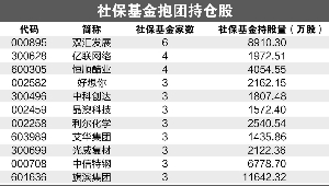 社?;鹱钚鲁霈F在117只個股合計持股量21.50億股,持倉不變的有20只個股,13只個股二季度獲3家及以上的社保基金抱團持倉。