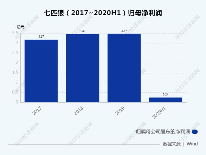七匹狼2020年上半年歸屬于上市公司股東的凈利潤約為2424萬元,同比下降80.36%;營業收入約為13.54億元,同比下降12.93%。
