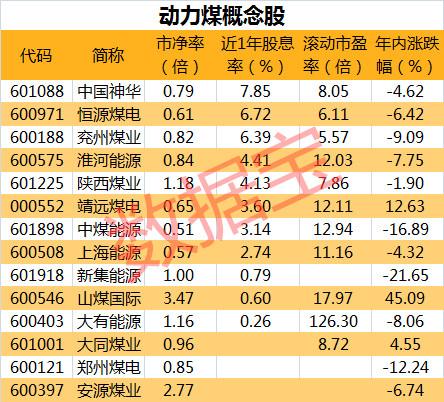 動(dòng)力煤板塊估值較低。9家公司股價(jià)跌破凈值,如中煤能源、上海能源(行情600508,診股)、恒源煤電(行情600971,診股)和靖遠(yuǎn)煤電的最新PB值均不足1。兗州煤業(yè)(行情600188,診股)、恒源煤電和陜西煤業(yè)(行情601225,診股)等10家公司最新滾動(dòng)市盈率不足20倍。