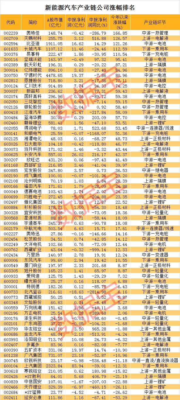 寧德時代、上汽集團(行情600104,診股)、比亞迪、長城汽車A股市值均超千億,其中比亞迪、長城汽車年內漲幅均已翻倍,分別達到121.26%、112.59%,與去年底相比,寧德時代、比亞迪市值增長均在千億元以上。新能源汽車產業鏈中,奧特佳(行情002239,診股)、天賜材料(行情002709,診股)、易事特(行情300376,診股)今年以來漲幅也已翻倍。不少產業鏈公司是北上資金重倉對象,據統計,北上資金超10億元持倉的有15家,包括寧德時代、匯川技術(行情300124,診股)、上汽集團、比亞迪、恩捷股份等,寧德時代獲北上資金持倉超190億元居首。