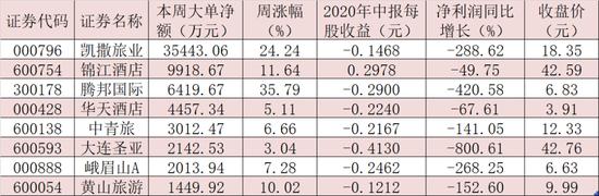 表:本周大單資金凈流入超過1000萬元的旅游酒店股