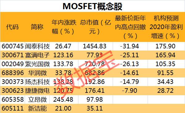 證券時(shí)報(bào)·數(shù)據(jù)寶統(tǒng)計(jì)顯示,8只MOSFET概念股上半年均實(shí)現(xiàn)盈利,其中聞泰科技、華潤(rùn)微、紫光國(guó)微(行情002049,診股)和富滿電子歸母凈利潤(rùn)增速均超100%。從機(jī)構(gòu)預(yù)測(cè)的2020年凈利潤(rùn)增速看,聞泰科技、富滿電子和紫光國(guó)微均將實(shí)現(xiàn)翻倍式增長(zhǎng)。