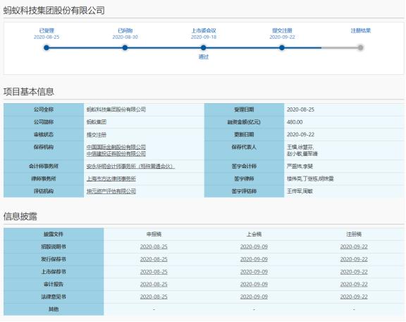 證監(jiān)會同意螞蟻集團(行情688688,診股)IPO注冊,同日,螞蟻集團通過港交所聆訊。A股代碼688688;10月29日,投資人可以參與螞蟻新股申購。