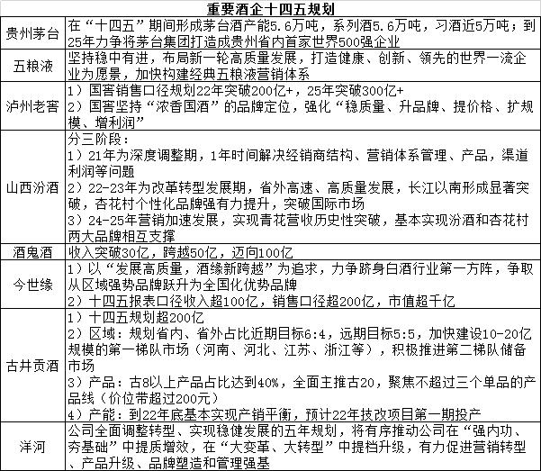 附:部分重要酒企十四五規(guī)劃