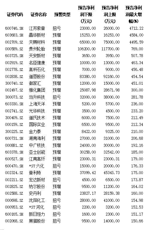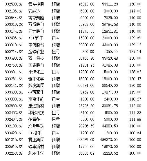 預(yù)告年報(bào)凈利同比翻番的化工類上市公司