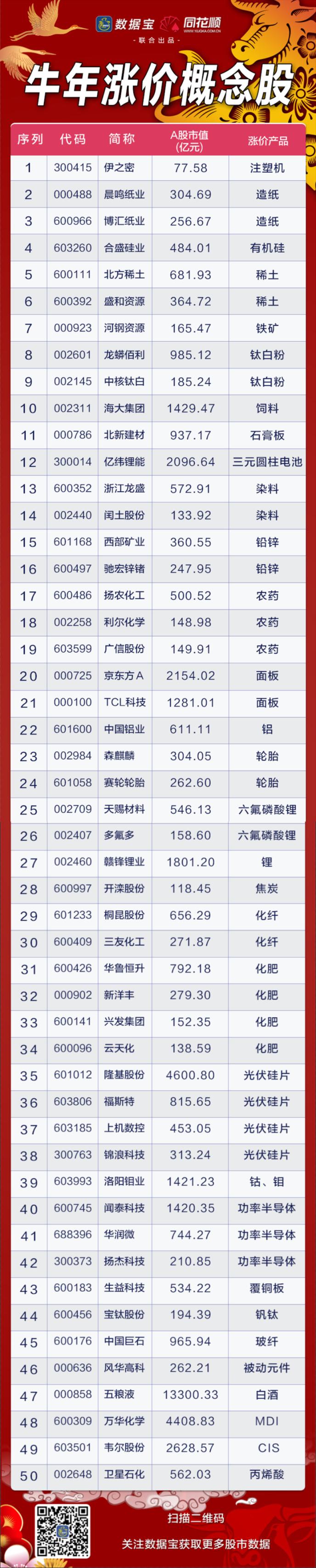 布局牛年大題材:影響10萬億市值,化工股已成急先鋒,稀土等蓄勢待發,最全漲價概念股名單
