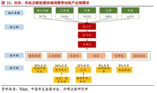 碳中和推動的交通運輸、光伏、風電領域需求以及建筑業的環保要求將推動鋁需求提升。據中國有色金屬協會,2019年中國電解鋁消費結構中,電力電子、交通運輸、建筑業占比共約68%。第一,鋁在空氣中的穩定性和回收價值高、污染小的特點,使鋁在環保的要求下被越來越多地應用于建筑業,特別是在鋁合金門窗、鋁塑管、裝飾板、鋁板幕墻等方面。第二,鋁合金的使用可使新能源汽車、高鐵、飛機車身或機身輕量化,是交通運輸部門提升單位能耗運輸里程的重要金屬材料。第三,光伏、風電電站對電纜的需求量極大,鋁合金電纜具有造價低性能優的特點,有望受益。