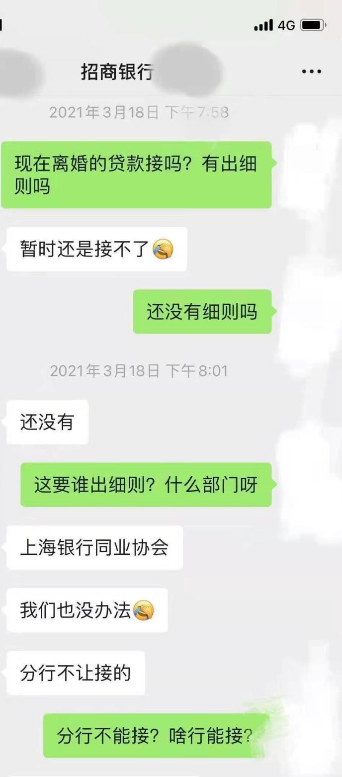 “全市支行離婚三年內(nèi)的貸款暫時(shí)都接不了,沒辦法,分行不讓接。”“婚姻狀態(tài)三年內(nèi)出現(xiàn)變化的,我們都不接。”離婚之后,有置換需求的人士跑遍上海的十幾家銀行,得到的均是一口拒絕。